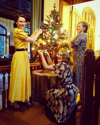 I don't have enough chances to wear eveningdresses but during this holiday I wore several, just because. Outfit: Mid 1930's dress with painted flowers